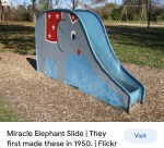 Research shows these slides were first made in 1950’s. We had one in our local park. As time passed, other playground equipment was added. But whenever we left the park, it was the small elephant slide the kids begged to go down.